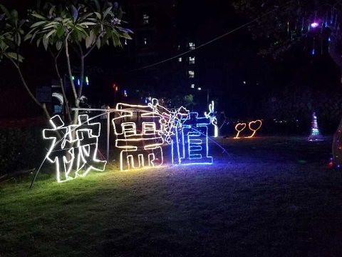 此次灯光作品展利用灯光与草木结合的方式,在宁静的夜晚焕发出别样的光芒。微风徐来,七彩的灯光在树枝上摇曳,美轮美奂。引人注目的莫过于在草坪上由灯光组成的“被需值”三个字,提高“被需值”教育,是我院倡导的新理念。
