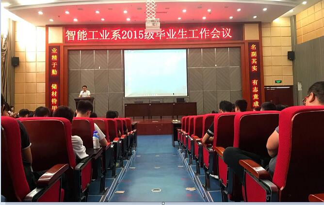 2017年9月2日上午10点,智能工业系在学院四楼报告厅召开专题会议,布置2018届毕业生就业工作。会议要求落实毕业生顶岗实习与就业一体化原则、坚持学生自主与系部推荐相结合原则、坚持服务地方经济原则,保证学生安全就业、理想就业、对口就业。系团总书记杨慧婷老师主持会议。系主任老师、党支部副书记马健锋老师、系部全体教职工及2018届毕业生参加了会议。